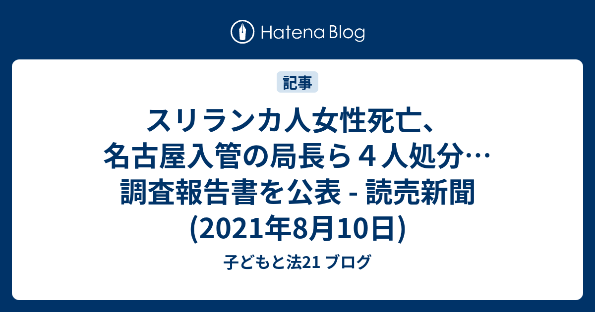 Mar 15, 2021 · 既に各所で報道されているとおり、2021年3月6日に名古屋入管収容場でスリランカ人女性が死亡しました。入管収容施設内で繰り返される死亡事件につき、本当に心が痛みます。 私はこれまで入管内や退去強制過程での死亡事件のうち、4件につき訴訟や証拠保全で代理人を務めました。他に証拠. May 25, 2021 · スリランカ人女性の死亡事件が示唆する入管の非道と秘密主義 2021年05月25日 23:57 その 1 つが、今年 3 月 6 日に、名古屋出入国在留管理局 ( 名古屋入管 ) で亡くなったしリランカ人の女性ラトナヤケ・リャナゲ・ウィシュマ・サンダマリ ( ウィシュマ ) さんの. Mar 14, 2021 · 「ここから連れ出してほしい」。それが、30代のスリランカ人女性から、支援者が聞いた最後の言葉だった。名古屋出入国在留管理局(名古屋市. May 31, 2021 · 名古屋出入国在留管理局(名古屋市)で収容中に死亡したスリランカ人女性ウィシュマ・サンダマリさん=当時(33)=の遺族らが31日、東京都. May 17, 2021 · 【nhk】ことし3月、名古屋出入国在留管理局で収容中の30代のスリランカ人女性が死亡した問題をめぐり、来日した遺族が. May 23, 2021 · 入管施設収容中に死亡 スリランカ人女性の法要 営まれる. May 08, 2021 · 日本共産党の藤野保史議員は7日の衆院法務委員会で、名古屋の入国管理施設でスリランカ人女性が死亡した事案で、女性がdv被害を受けていたに. May 17, 2021 · 名古屋出入国在留管理局に収容されていたスリランカ人女性ウィシュマ・サンダマリさん(当時33)が死亡した問題で、遺族が17日、名古屋入管を. Apr 08, 2021 · 名古屋出入国在留管理局で収容中のスリランカ人女性(当時33)が死亡する事案があり、支援団体が7日、名古屋入管に抗議し、真相究明を求めた. May 17, 2021 · 名古屋の入管施設で死亡したスリランカ人女性の遺族が17日、女性が収容されていた施設を訪れました。体調不良を訴えた女性が適切な治療を.